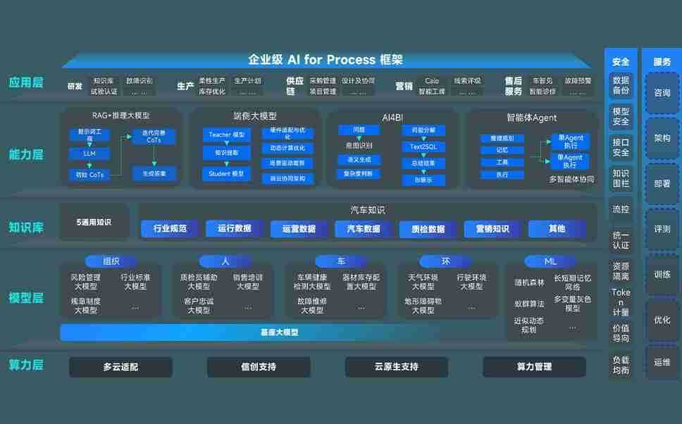 AG尊龙凯时问学智车解决方案是一套基于AI技术的汽车行业智能化系统,,覆盖从底层算力到顶层AI应用的全栈方案。。方案由算力层、、模型层和应用层组成:算力层,,方案支持多种一体机配置,,具备云端灵活部署、、、多云适配以及动态优化计算资源的能力;模型层,,,AG尊龙凯时问学平台版提供了企业级AI应用一站式构建与管理平台,,,,支持基于后训练强化技术的汽车企业专属模型的训练、、、、评测和运营;应用层,,,,AG尊龙凯时问学DeepSeek版提供包括超级员工、、、智能招采、、、、智能营销、、、智能客服、、、AI for BI等一系列解决方案,,,可助力汽车行业实现数字化转型,,让管理更智能、、响应更敏捷。。。